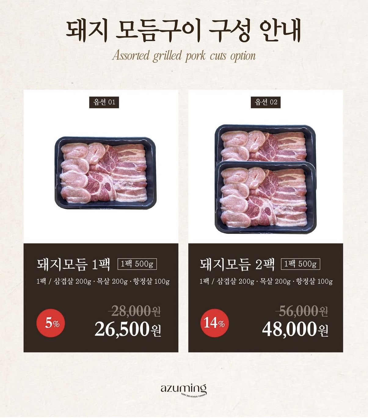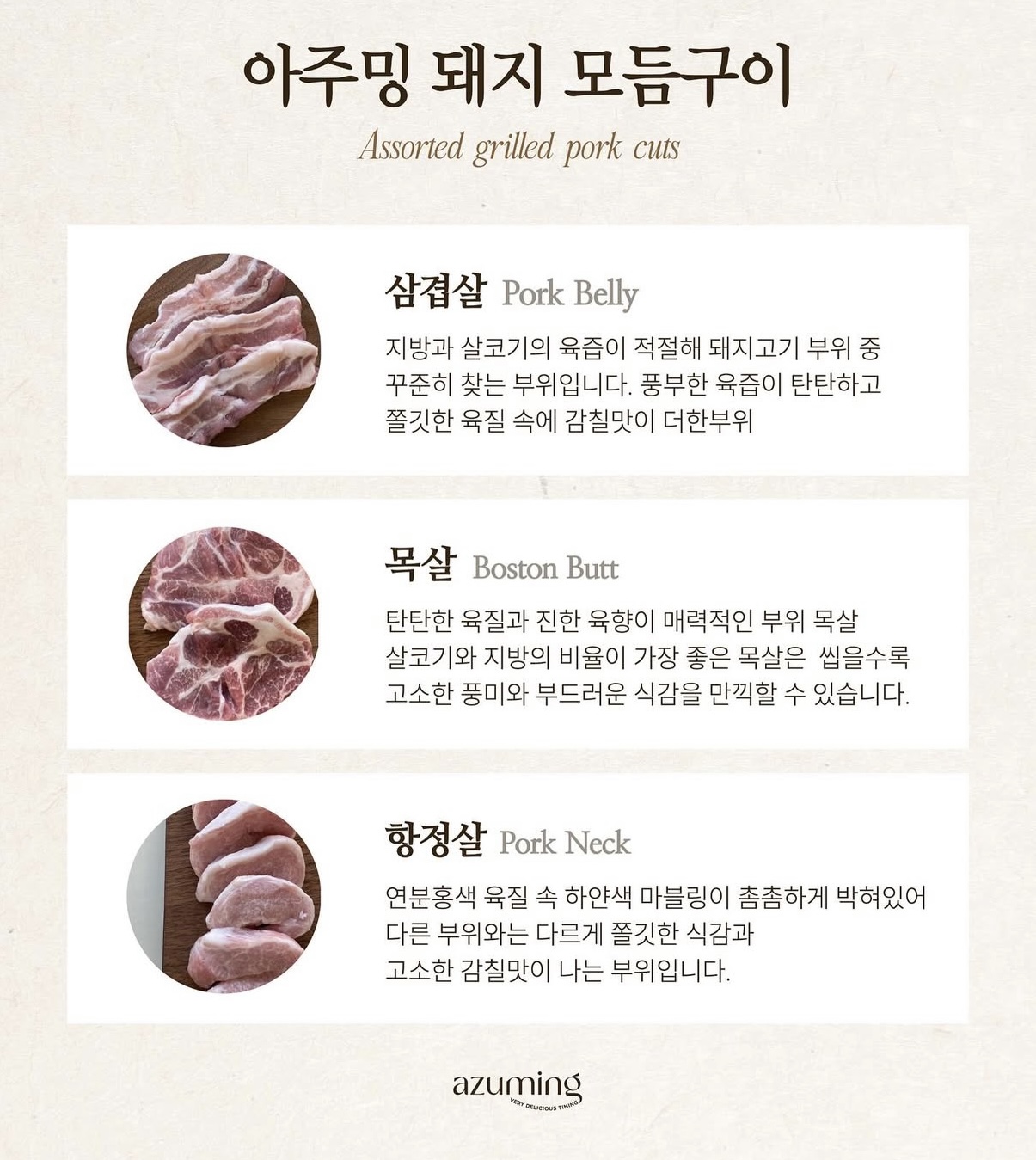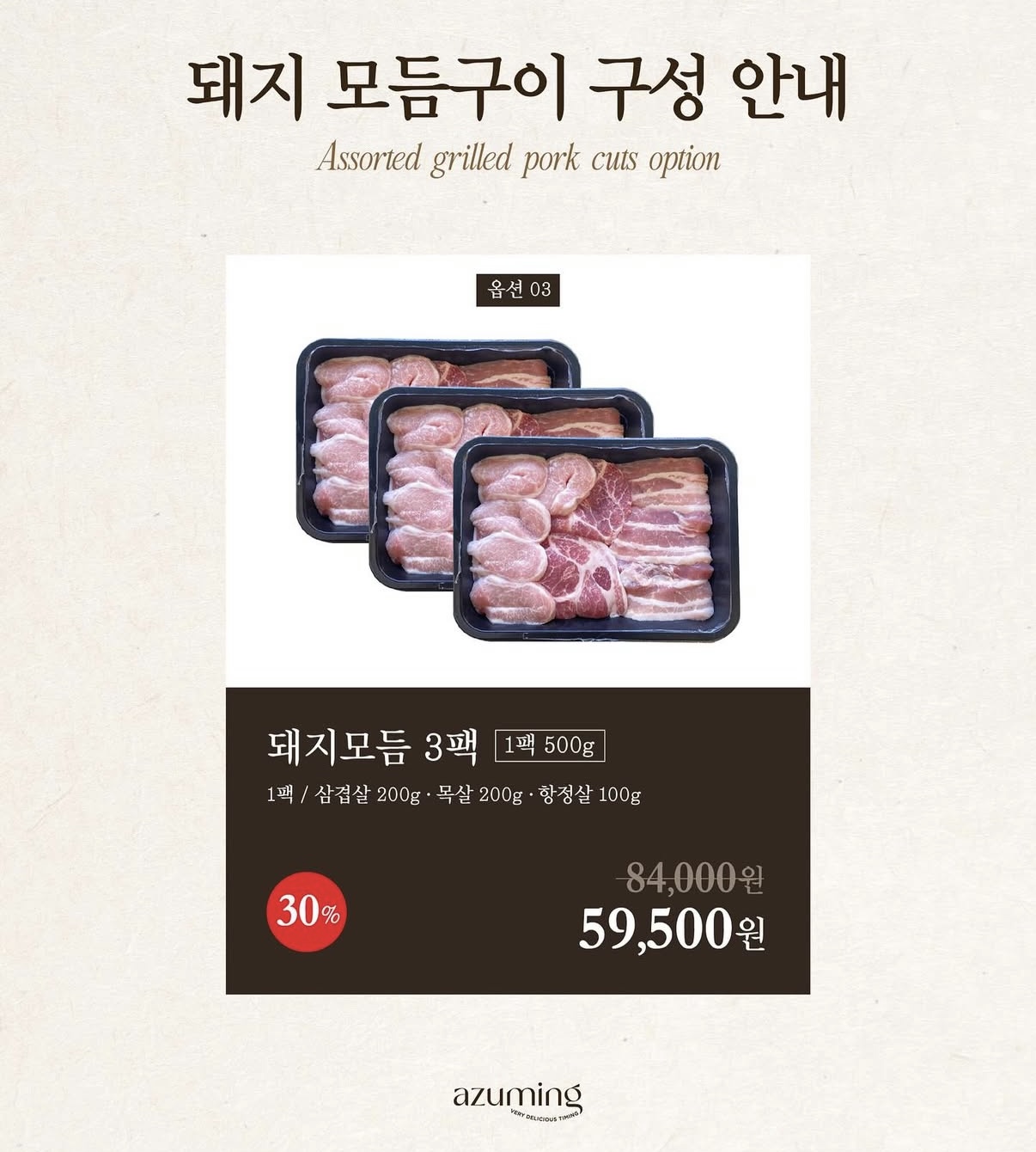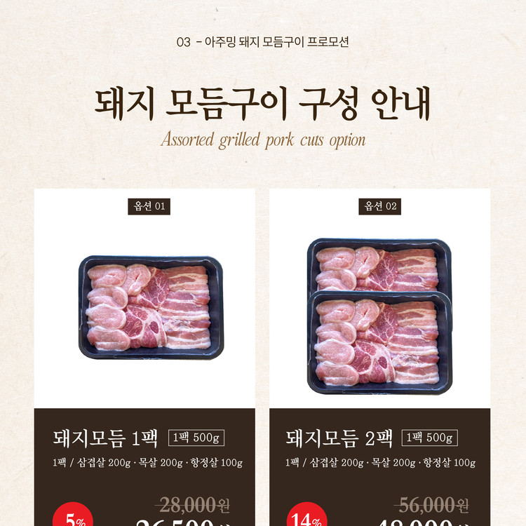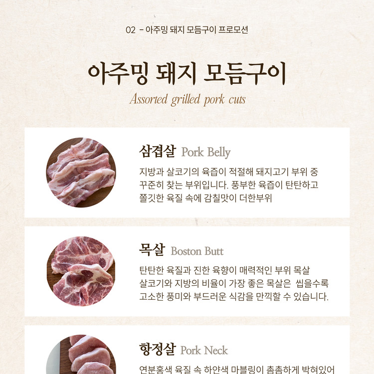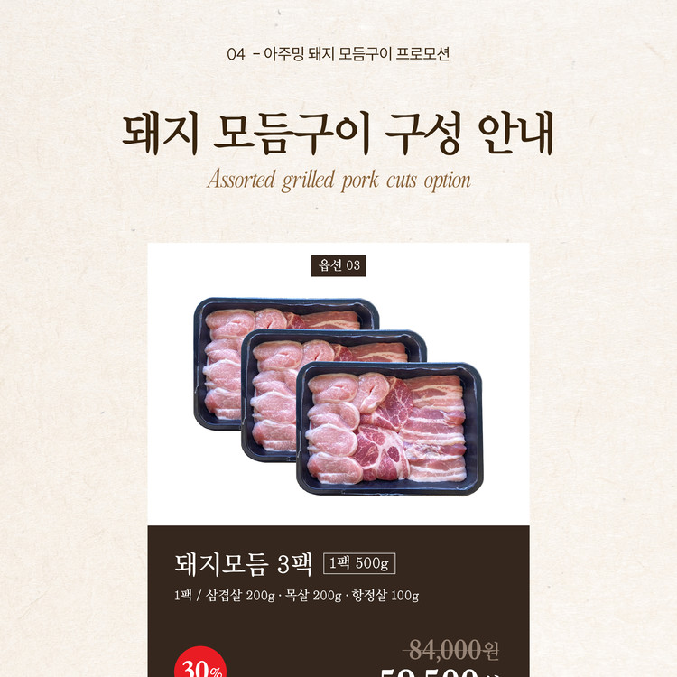돼지 모듬구이(삼겹살/목살/항정살)